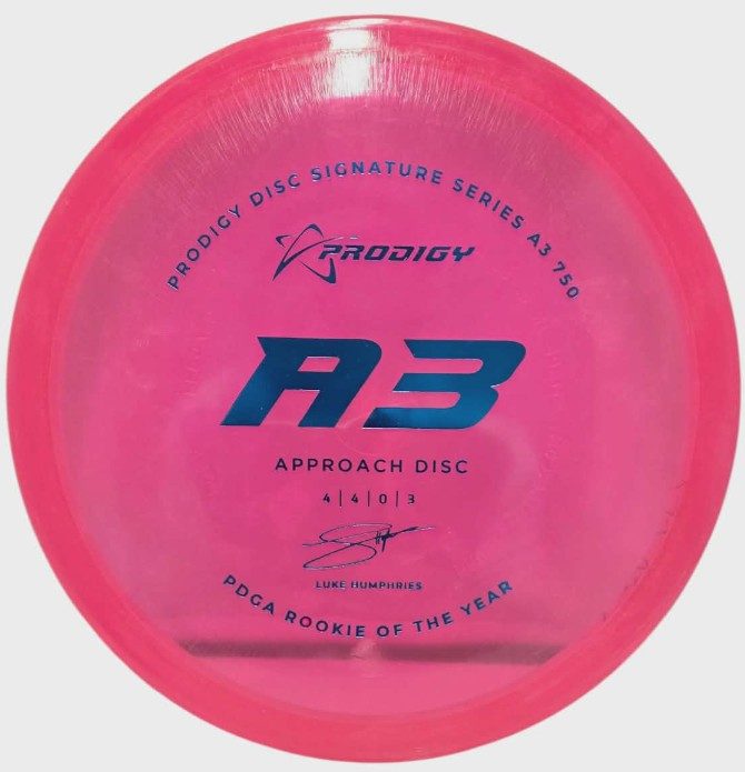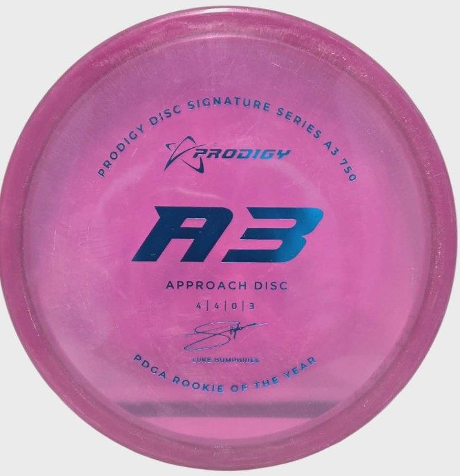 The Prodigy Disc A3 is an overstable utility disc that fills the gap between midranges and putters. The A3 is perfect for strong to above average throwers who want to avoid the possibility of their shot turning over. The disc is consistent and reliable in all wind conditions and perfect for short, trick shots as well as high wind.