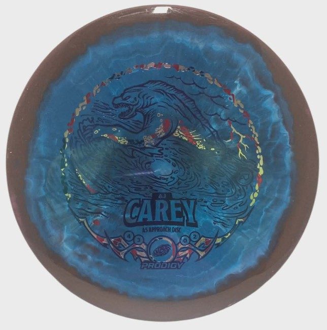 AJ selected the A5 Approach Disc in 750 Spectrum. The A5 is a slightly overstable approach disc that will work in to be a straight flyer. It has a nice, smooth feel with a shallow profile and flat top, which makes it ideal for sidearm approaches. It can handle torque well and has a mild finish on the end, so it won’t skip too far from where it lands.