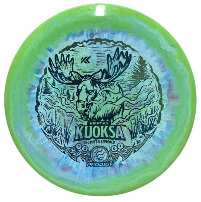 Kristian selected the PA-3 Putt & Approach Disc in 400 Spectrum. The PA-3 is our top-selling putt & approach disc. Aim straight at the basket and nail your putts and approaches with a laser-straight, stable flight path. The PA3 features a beaded rim, and is a favorite for disc golfers of all skill levels.
