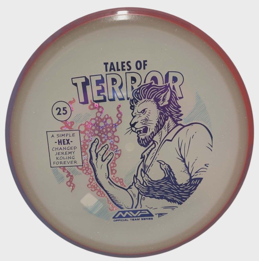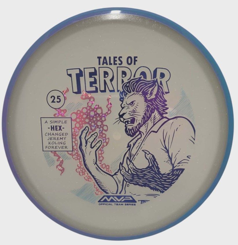 DoubleRam Design shows us the terrifying alternate origin of Jeremy Koling’s childhood nickname – Lionheart – on the new Particle Eclipse Hex! Made with our industry-leading Eclipse plastic, this new blend of glow with colorful particles inside gives the disc its own magical feel. As a straight flying midrange, the Hex is set to become even more mesmerizing than before with its straight to understable flight allowing for exceptionally easy line shaping – showcasing why the Hex is one of the most versatile discs around. Unleash your inner beast and shred the course with the Particle Eclipse Hex, available at your favorite local or online MVP dealer!