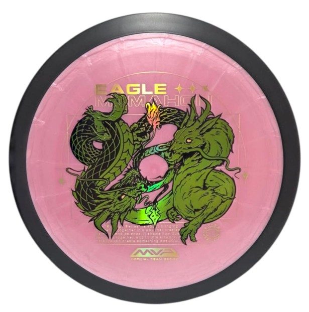 The next Eagle McMahon Team Series disc in his new Synergy Series of stamps, illustrated once again by the impeccable Green C Studio, the Plasma Dimension! One of Eagle’s most used drivers, the Dimension is a demanding, 14.5 speed overstable driver with power-resistant stability and his first choice for his new series of stamps centered around the concept of duality in harmony. High power players will be able to manipulate stable lines as needed, while advanced and beginner players will have one of the strongest headwind fighters their bag could have. Find out why Eagle keeps his Dimension close by trying your own today!