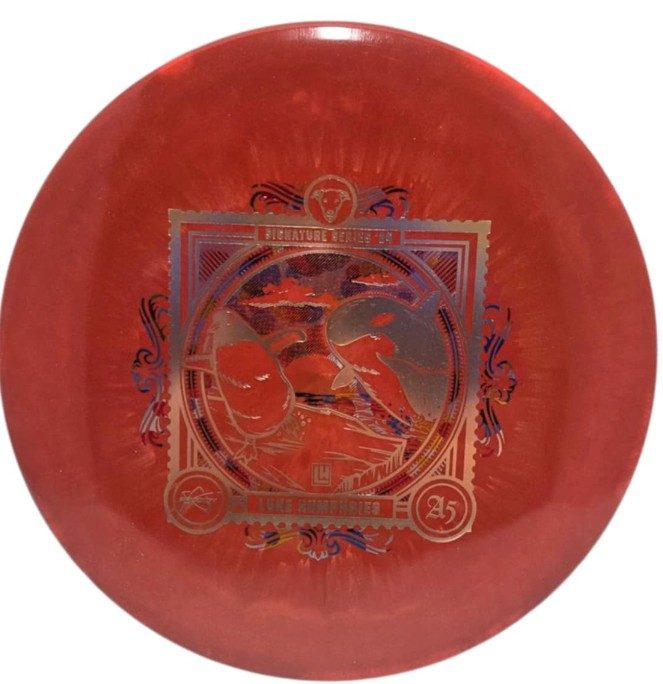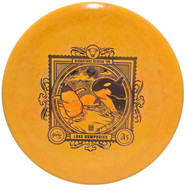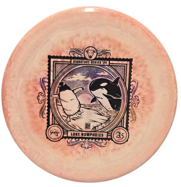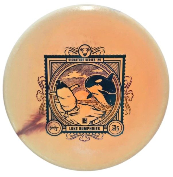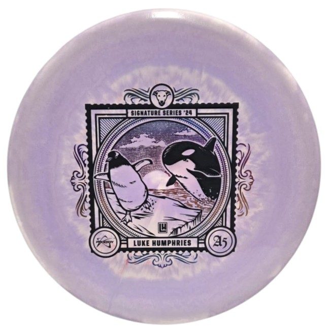 Deliver a message on the course with Luke Humphries’ 2024 Signature Series A5 in Special Blend Spectrum plastic. The 2024 Signature Series explores the Evolution of Flight using a postage stamp motif, and Luke chose an inquisitive Penguin to represent the Avian Era of Flight for his custom artwork. This is the first time we have produced a Special Blend plastic disc with the Spectrum visual treatment. Support Luke by picking yours up today