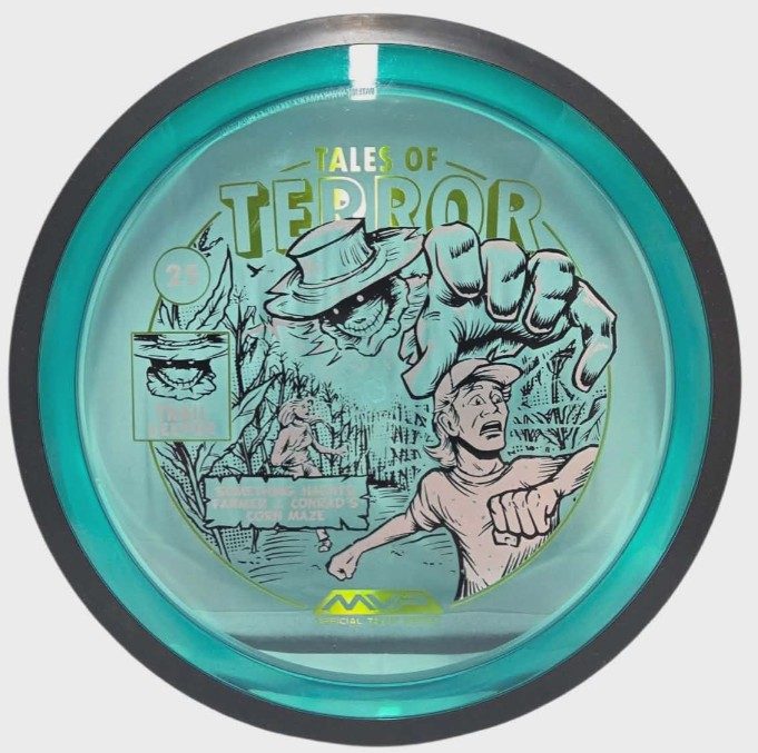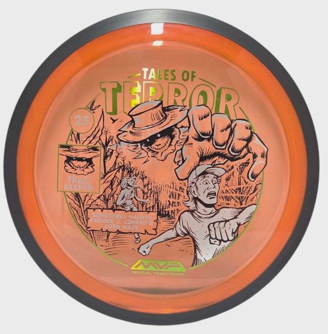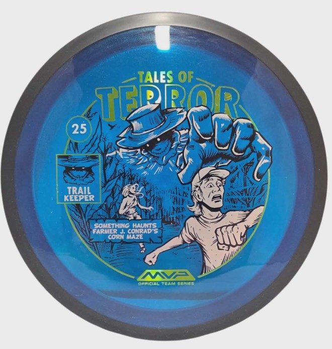 The highly requested fan favorite Proton Trail has returned! Green C Studio adorns this disc with a glimpse of the Trail Keeper haunting Conrad’s Corn Maze, a classic horror story. Excelling in hyzer-flip drives, turnovers, and straight shots, the Trail has become one of the most popular drivers in the MVP lineup that throwers of all power levels will find significant use for. You don’t have to get lost in a killer corn field to get your hands on one of these, just head over to your favorite local or online MVP dealer to get yours today!